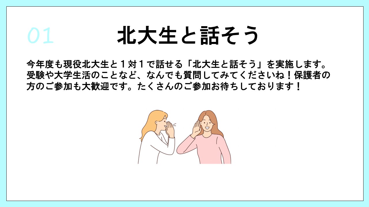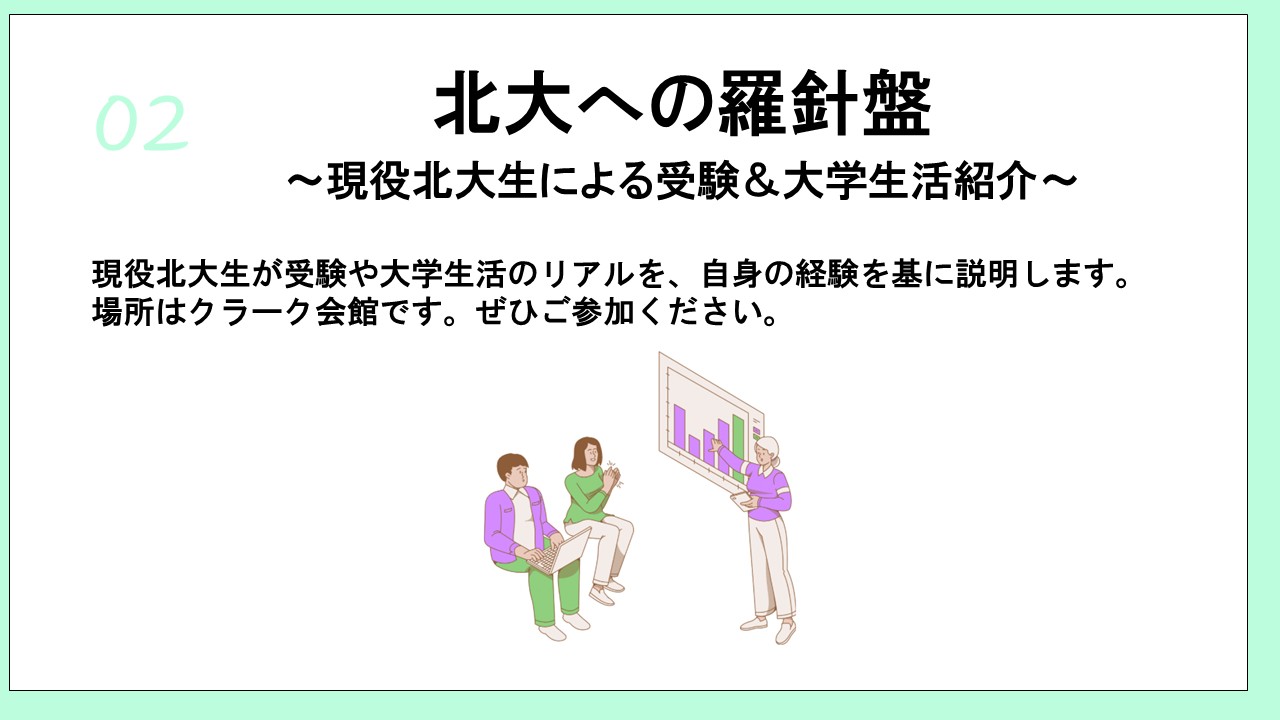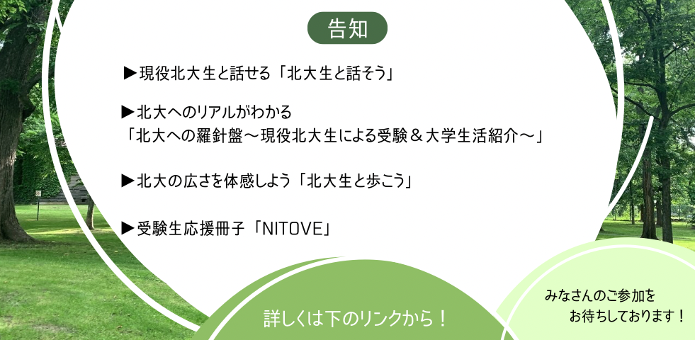 受験相談や大学生活についてなど、現役北大生に聞いてみたいことがあれば、こちらの公式LINEからお気軽にご相談ください!対応期間:7/1~8/31